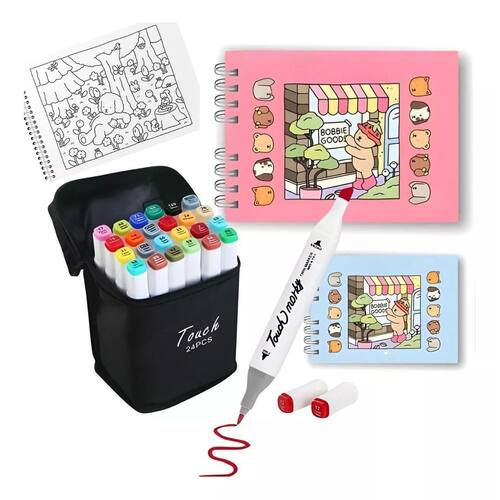 Kit Caderno + Canetinhas Bobbie Goods Ponta Dupla 24 Cores - Azul ou Rosa O Kit Caderno + Canetinhas Bobbie Goods é a escolha perfeita para quem ama criatividade e organização. Com design encantador e cores vibrantes, este conjunto une estilo e funcionalidade, tornando-se ideal para artistas, estudantes e entusiastas de papelaria. Características do Kit: Caderno de Qualidade: Capa dura resistente, com acabamento premium e páginas em papel de alta gramatura. Canetinhas Ponta Dupla: 24 cores vibrantes, ponta fina para detalhes e ponta chanfrada para traços largos. Opções de Cores: Disponível em azul ou rosa para combinar com seu estilo. Tinta de Secagem Rápida: Sem manchas e segura para uso, à base de água, sem odor e atóxica. Versatilidade: Perfeito para anotações, lettering, ilustrações e organização do dia a dia. Com esse kit incrível, você pode soltar a criatividade e dar vida às suas ideias Escolha sua cor favorita e transforme sua experiência com papelaria. Marca: Não Informado