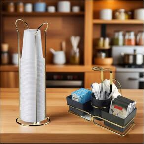 01 - Suporte Porta Copos Descartáveis de 200ml - Dourado