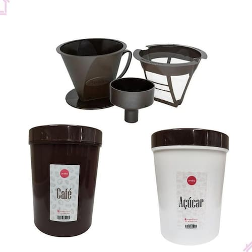 O Kit Café Completo Porta Filtro Permanente Potes Café Açúcar é a solução perfeita para facilitar o preparo do seu café diário. Composto por 5 peças essenciais, esse kit irá tornar a sua rotina muito mais prática e funcional.