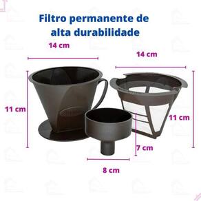 O destaque desse kit é o filtro permanente, que dispensa o uso do filtro de papel. Feito em peça única, sem cola, esse filtro é extremamente durável e resistente. Além disso, a tela filtrante e os suportes da tela possuem alta resistência térmica, garantindo um café fresquinho e saboroso a cada preparo.