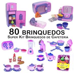 Kit café infantil registradora geladeira jogo de panela 80p produto em estoque