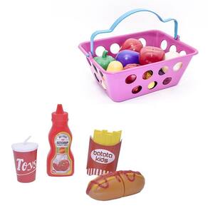 o kit vem com caixa registradora com dinheirinho e mercadinho com frutas, legumes e comidinhas, cafeteira e liquidificador, microondas, xícara com pires e colher, bulê, açucareiro, batedeira, escorredor com louça, geladeira com acessórios, jogo de panelas com acessórios , forminhas com acessório