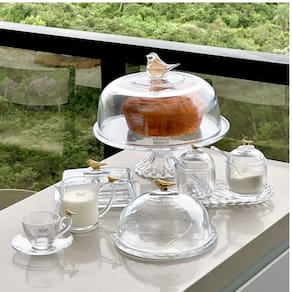 Kit Cafe Manhã Cristal Bird Porta Bolo, Açucareiro, Manteiga 6pç Wolff