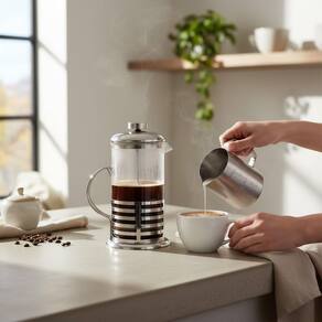 Kit Café - Cafeteira Francesa em Inox + Jarra Barista Aço Inox 350ml