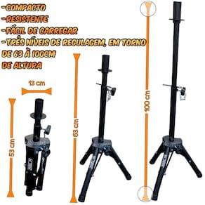 -Tripé com altura ajustável de até 1m de altura ( tripés - 3 níveis de altura );