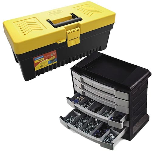 Conteúdo da Embalagem: 1 x Caixa Plástica Para Ferramentas 17 Pol 43804117 Tramontina 1 x Organizador Gaveteiro Com 6 Gavetas Multiuso 7010 Arqplast