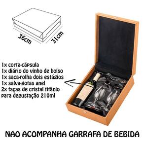 2x Taças de Cristal com Revestimento de Titânio (210ml): Eleve sua experiência sensorial com taças de cristal de alta qualidade. O revestimento de titânio aprimora a cor, aroma e sabor do vinho, proporcionando uma degustação verdadeiramente excepcional.