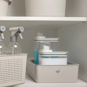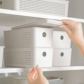 Os cestos organizadores do kit Flow combinam funcionalidade com um design elegante para transformar qualquer ambiente. Com um conjunto de três tamanhos diferentes, 3L, 5,4L e 12L, as caixas organizadoras são a solução perfeita para uma variedade de necessidades de armazenamento, como produtos de limpeza, itens de higiene, roupas, acessórios, alimentos e muito mais. A cor bege harmoniza facilmente com qualquer decoração, enquanto os cantos arredondados adicionam um toque sofisticado ao design.