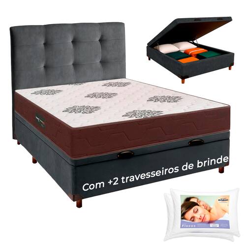 Colchão: Espuma D45, Tecido Malha 180gr. Cama Box Bau: Estrutura reforçada, Revestimento em Veludo. Cabeceira: Revestimento em Veludo. Travesseiro: Flocos de espuma, Fibra Siliconada.Vendido e entregue por Kasamix Móveis