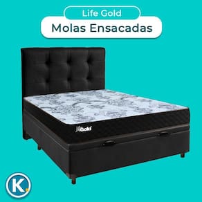 Kit Cama Box Bau + Cabeceira + Colchão Casal Molas Ensacadas - Life Gold - Paropas Conjunto Casal Colchão Life Gold + Cama Box Bau Colchão Casal com 25cm de altura, ideal para conforto diário com excelente estrutura