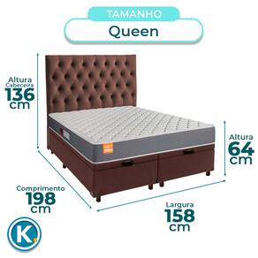 Conjunto Queen Colchão Pro + Cama Box BauColchão Queen com 22cm de altura, perfeito para conforto e suporte no dia a diaRevestimento em malha e poliéster, combinando maciez, resistência e boa ventilaçãoSuporta até 150kg, ideal para diferentes perfis com excelente durabilidadeBase baú Queen com 42cm de altura e amplo espaço interno para organizaçãoRevestimento em Veludo , fácil de limpar e com visual modernoEstrutura reforçada com capacidade para até 150KgFicha Técnica Colchão:Modelo: ProMarca: InducolTamanho: QueenTecido: Malha/PoliésterLargura: 158cmComprimento: 198cmAltura: 22cmSuporte de Peso: 150KgGarantia: 3 MesesFicha Técnica Cama Box Bau:Modelo: EliteMarca: NatureTamanho: QueenTecido: VeludoLargura: 158cmComprimento: 198cmAltura: 35cmAltura dos Pés: 7cmMaterial dos Pés: MadeiraSuporte de Peso: 150KgPeso: 40KgGarantia: 3 MesesAtenção:Antes da compra certifique-se de que o produto passa por elevadores, portas e corredores.As transportadoras não realizam entregas por escadas ou içamentos.Caso o item não caiba no elevador, a entrega será considerada concluída no térreo do prédio.A cor e tonalidade do produto pode variar de acordo com o dispositivo que o usuário está acessando.