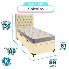Kit Cama Box Bau + Cabeceira + Colchão Solteiro D20 - D20 - Inducol - Bege
