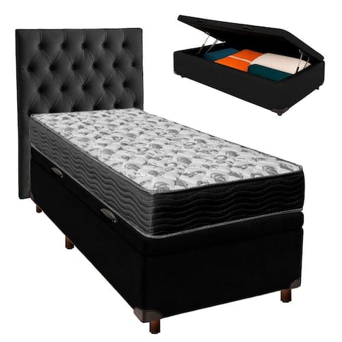 Poliéster (colchão), Veludo (cama box), Madeira (pés)Vendido e entregue por WebContinental