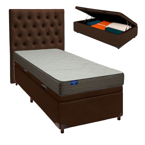 Kit Cama Box Bau + Cabeceira + Colchão Solteiro D33 - Orthotech - Inducol - Marrom
