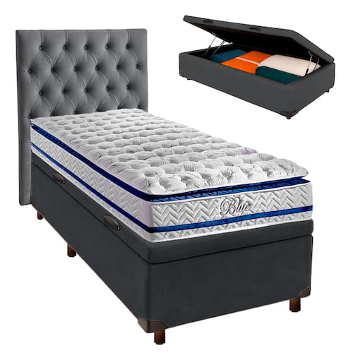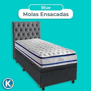 Kit Cama Box Bau + Cabeceira + Colchão Solteiro Molas Ensacadas - Blue - Paropas - Cinza