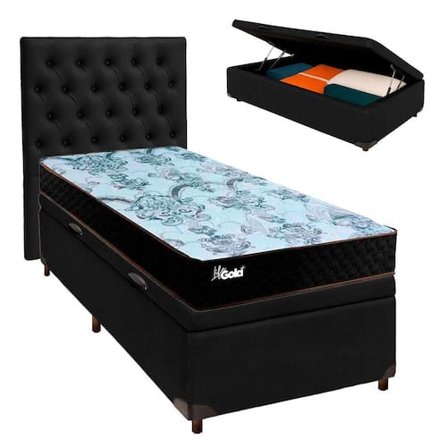 Kit Cama Box Bau + Cabeceira + Colchão Solteiro Molas Ensacadas - Life Gold - Paropas Conjunto Solteiro Colchão Life Gold + Cama Box Bau Colchão solteiro com 25cm de altura, ideal para conforto diário com excelente estrutura