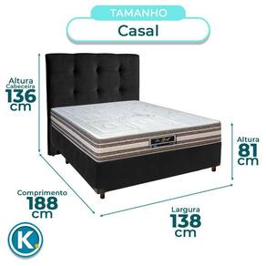 Modelo: Elite BiPartido Marca: Nature Tamanho: Casal Tecido: Veludo Largura: 138cm Comprimento: 188cm Altura: 35cm Altura dos Pés: 13cm Material dos Pés: Madeira Suporte de Peso: 150Kg Peso: 27Kg Garantia: 3 Meses