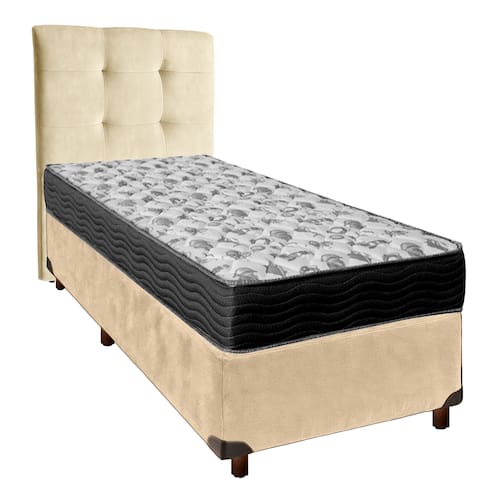 Kit Cama Box + Cabeceira + Colchão Solteiro D33 - Iso100 - Ortobom - Bege