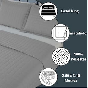 Kit Cama King Size Copacabana Percal 300 Fios com Porta-Travesseiros Variação: Cinza Olá Buscando um enxoval elegante que transforme seu quarto em um verdadeiro refúgio de conforto e estilo Seja bem-vindo a à Atual Ecommerce Apresentamos o Kit 3 Peças Cobre Leito King Copacabana Matelado Percal 300 Fios - a união perfeita entre requinte, maciez e funcionalidade. Ideal para quem busca renovar o ambiente com bom gosto e qualidade. Problema Comum Resolvido: Muitos clientes relatam que cobertas comuns são pesadas, esquentam demais ou não combinam com a decoração. Esse kit resolve tudo isso: é leve, estiloso, tem toque aveludado e acabamento refinado - tudo por um excelente custo-benefício Benefícios Reais : Sofisticação que se nota ao primeiro toque comprei para nossa cama king e ficou lindo O tecido é muito macio e elegante. - Paula F. Visual premium com toque moderno O matelado em costura dá um charme extra. Muito superior a outros que já tive. - Leonardo R. Praticidade com qualidade de hotel super fácil de cuidar e não amassa com facilidade. Parece cama de hotel 5 estrelas. - Mariana S. Especificações Técnicas: Quantidade de peças: 3 01 Cobre Leito King: 2,60 m x 3,10 m 02 Porta-Travesseiros: 70 cm x 50 cm com aba americana Tecido: 100% poliéster - Percal 300 fios Enchimento: 100% poliéster Acabamento: Costura matelada Toque: Aveludado e macio Cores disponíveis: 5 opções elegantes Categoria: Casa - Quarto / Cama Casal - Cobre Leitos : 3 meses contra defeitos de fabricação. Compra segura e com respaldo Resumindo: Esse kit é perfeito para quem valoriza conforto, sofisticação e praticidade no dia a dia. Um toque de hotel 5 estrelas no seu quarto. Atual Ecommerce agradece a sua visita. Esperamos fazer parte da transformação do seu lar. Marca: Não Informado