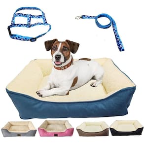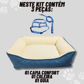 Kit Cama Peluciada Confort 50X40 Cm E Coleira Peitoral Pet Cor: Azul-petróleo Seja Bem Vindo a Loja Oficial da Dog Cat Store.