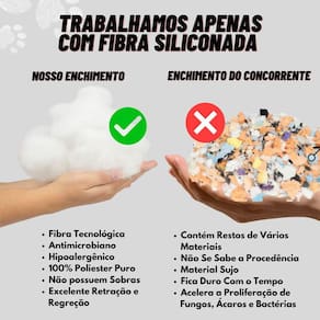 Enchimento com Fibra Siliconada que traz mais aconchego ao amiguinho a , pois é um material leve e mais fofinho; Nossa Caminha tem um zíper nas laterais que permite a retirada dos enchimentos para que a lavagem fique mais prática e rápida. Dessa forma seu produto dura 3 x mais do que o produto da Concorrência.