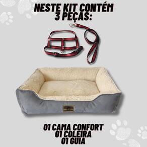 Kit Cama Peluciada Confort 50X40 Cm E Coleira Peitoral Pet Cor: Cinza Seja Bem Vindo a Loja Oficial da Dog Cat Store.