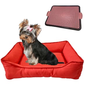 Kit Cama Retangular Tactel M E Sanitário Pet Com Grade Médio