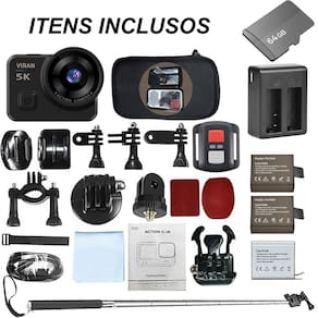 A Câmera Esportiva v10 5k com Estabilizador de Imagem, chega trazendo muitas novidades e atualizações em relação aos modelos anteriores, com gravação de vídeo na resolução de 5k (5120 x 2880 pixels) e dispondo de estabilização de imagem eletrônico (EIS), com sensor IMX386, sendo utilizado algoritmo de compensação de imagem cruzada para compensar a mudança e produzir vídeos estáveis, permitindo que estabilize a câmera, e obtendo vídeos e fotos cinematográficas suaves, fluidas. Dispõe de lente com 170º grande angular, proporcionando um extenso ângulo de visibilidade, e microfone integrado que possibilita captar áudio durante as gravações. A prova d’água permitindo o uso subaquático até 5 metros de profundidade ou em dias de chuva, contando ainda com controle remoto e diversos acessórios inclusos. Além de possuir funções exclusivas para a modalidade como visão noturna e sensor de movimentos.