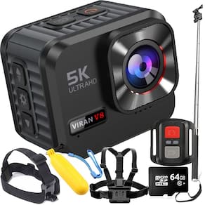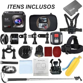 A Câmera Esportiva v8 5k com Estabilizador de Imagem, chega trazendo muitas novidades e atualizações em relação aos modelos anteriores, com gravação de vídeo na resolução de 5k (5120 x 2880 pixels) e dispondo de estabilização de imagem eletrônico (EIS), com sensor IMX386, sendo utilizado algoritmo de compensação de imagem cruzada para compensar a mudança e produzir vídeos estáveis, permitindo que estabilize a câmera, e obtendo vídeos e fotos cinematográficas suaves, fluidas. Dispõe de lente com 160º grande angular, proporcionando um extenso ângulo de visibilidade, e microfone integrado que possibilita captar áudio durante as gravações. A prova d’água permitindo o uso subaquático até 5 metros de profundidade ou em dias de chuva, contando ainda com controle remoto e diversos acessórios inclusos.