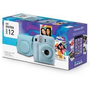Kit Câmera Instax Mini 12 Azul Bolsa Filme Fotos Reveladas Instantâneas Presente Retrô Spray Art