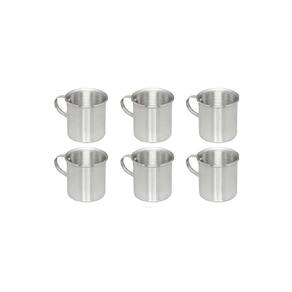 Kit composto por 6 unidades de canecas de aluminio com alça também em alumínio, confeccionada com material reforçado, sendo cada caneca com capacidade de 700ml. com boca de 10cm de diâmetro. Ideal para linha de utilidade doméstica, bem como escolas, creches e etc.