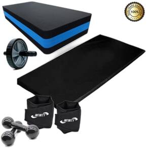 Kit caneleira 2 kg+step + halter 2k+colchonete+roda+extensor Kit funcional para treino em casa e e fortalecimento de músculos Kit composto por: 1- colchonete 90 x 45 x 2 cm 1- par de caneleira de 2 kg 1- step de eva 60cm x 28cm x 10cm 1- par de halter emborrachado 2 kg 1- roda abdominal 1- extensor elástico com apoio