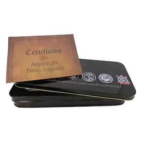Ideal para o torcedor apaixonado pelo seu time, possui pequena amostra de Terra Sagrada retirada da fase de construção do estádio em Itaquera.