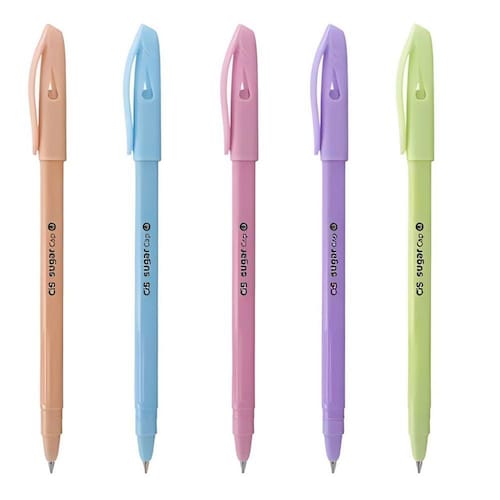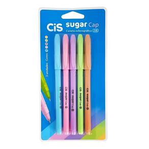 Kit Canetas-Esferográficas Sugar Cap 1.0mm - Escrita Fina - 5 Cores Tom Pastel