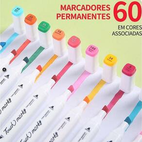 Kit canetas marcador permanente ponta dupla 60 cores + bolsa