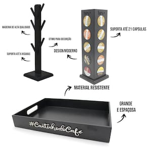 esse porta cápsulas tem ar moderno feito em madeira mdf pintada de preto, dando um ar de elegância para qualquer canto de sua casa. Organize seu cantinho do café com as cápsulas sempre a mão e ainda decore o seu ambiente com certeza vai ser uma peça que vai chamar a atenção e tirar elogios