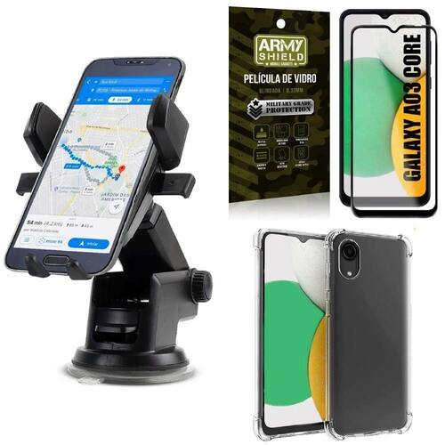 Suporte veicular automático engate rápido + capinha anti impacto + película 3d - armyshield