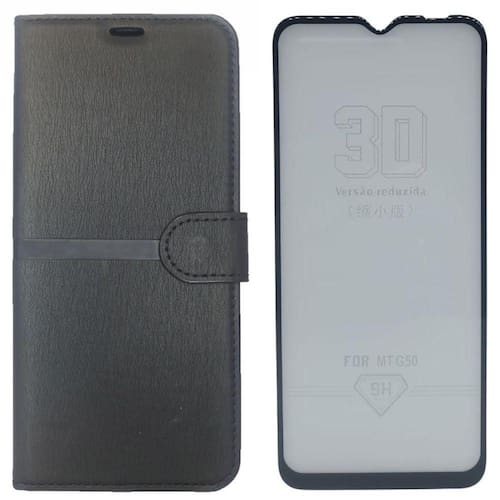 Kit capa carteira compatível com motorola g50 4g + película 3d Conteúdo da embalagem: 01 - capa carteira compatível com motorola g50 4g tela de 6.5 - cor preta 01 - película de vidro 3d compatível com motorola g50 4g tela de 6.5 01 - kit limpeza para aplicação Cores disponíveis: com borda preta. Atençao ao modelo do celular, esse kit nao é compatível com:- motorola g50 5g Capa carteira: - a capa carteira é produzida com materiais de excelente qualidade, que dá um toque premium ao seu celular. As costuras, ímãs e demais detalhes possuem um ótimo acabamento. Características: - possui duas divisórias para cartões;- possui divisória para guardar notas dobradas; - fechamento magnético;- designer fino;- oferece estabilidade ao manusear o aparelho;- parte interna produzida em tpu;- confeccionada em material sintético;- encaixe perfeito no celular, com todas as entradas e saídas do seu aparelho. Película: - película em excelente qualidade para proteger seu celular. - fácil de aplicar. - não influencia sensibilidade de touch, funciona perfeitamente. - alta sensibilidade. - fácil aplicação e não deixa resíduos após sua remoção. - possui dimensões exatas do equipamento, não interfere no touch screen. Sobre aplicação: - aplicação a seco cuidado com ao aplicar. - não nos responsabilizamos por aplicações realizadas de maneira incorreta
