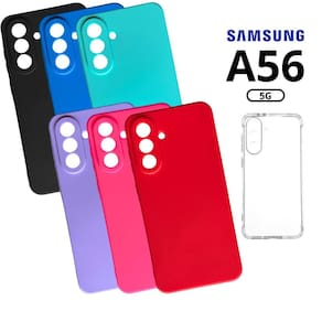 Kit capa case colorida + capinha transparente para samsung a56 Cor: preto+transparente