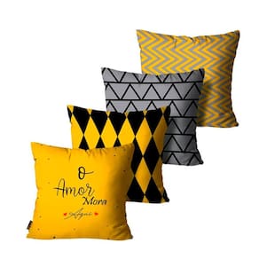 Kit 4 Capas De Almofadas Cinza E Preto 45X45