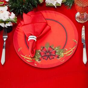Kit Capa De Sousplat Estampado Natalina C/ Guardanapos Mesa Posta Jogo Americano 10 Lugares - Decoração Natal Cor Laço Vermelho