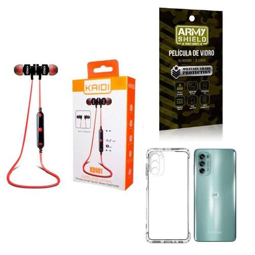 Fone de Ouvido Esportivo sem fio KD-901Se você procura um fone para as atividades diárias, exercícios e movimento o fone sem fio KD-901 é a escolha idealContém Tons graves , profundos e complexos. Um verdadeiro som de qualidadeControle a reprodução de músicas e vídeos direto do botão de controle.Atenda e desligue chamadas, microfone HD in line embutido com controle de faixas.Com imã embutido que não atrapalha e não fica caindo da orelha, produto de design intra-auricular projetado para ser confortável ao ouvido. Isolamento de ruídos sem vazamento de som. O fone utiliza uma tecnologia aeronáutica de redução de ruído. Isola interferência de ruído externo. Mergulhe no mundo da músicaEspecificaçãoVersão: V4.2Tempo de espera: 200hTempo de conversação: 6hTempo de reprodução de música: 4hTempo de carregamento: 1.5hFaixa de frequência: 2.402G-2.480GTemperatura ambiente: -20/ +60CDistância de transmissão: 10mEspecificação do DriverUnidade do driver: 10mmSensibilidade: 103dB +-3dBImpedância: 16 +- 15%Resposta de frequência: 20-20000HzComprimento do cabo: 600mm Conteúdo da Embalagem:1und - Fone de Ouvido Esportivo sem fio com microfone HD Atenção: Não acompanha itens não descritos neste anúncio.-------------Capinha Silicone Anti Impacto Anti Shock Transparente - ArmyshieldA capa de celular antishock é um produto de alta qualidade que oferece proteção e estilo para o seu dispositivo móvel. Feita de material de TPU poliuretano termoplástico de alta resistência, a capa é projetada para absorver impactos e proteger o seu celular contra quedas, arranhões e outros danos.A capa antishock transparente é especialmente projetada para se encaixar perfeitamente no seu celular, proporcionando uma cobertura completa e proteção para todas as partes do dispositivo. Ela é transparente, permitindo que você exiba a beleza do seu celular sem comprometer a proteção.-------------Película de Vidro 3D Blindada - ArmyshieldA película de vidro 3D para celular é um produto de alta qualidade que oferece proteção e estilo para o seu dispositivo móvel. Feita de vidro temperado de alta resistência, a película é projetada para se encaixar perfeitamente na tela do seu celular, proporcionando uma cobertura completa e proteção contra arranhões, rachaduras e outros danos.A película de vidro 3D é especialmente projetada para se curvar suavemente ao redor das bordas do seu celular, criando uma aparência elegante e sem bordas. Isso significa que você pode desfrutar de uma experiência de visualização imersiva e sem interrupções, sem se preocupar com a película descolando ou interferindo na sensibilidade da tela.Atenção: O produto acompanha apenas o que apresenta na imagem.
