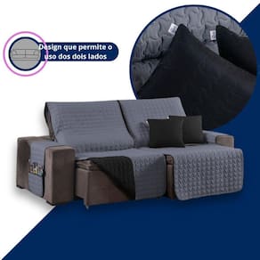 Kit Capa Protetora Sofá Retrátil 2,20m Shield Dupla Face + Almofadas Variação: Cinza e Preto Bem-vindo a à Atual Ecommerce - há mais de 4 anos oferecendo conforto e estilo para o seu lar Se você busca proteger seu sofá retrátil com sofisticação e praticidade, o Kit Capa Protetora de Sofá Retrátil Shield 2,20m Dupla Face com Almofadas é a escolha perfeita. Feito com tecido resistente, design moderno e caimento impecável, ele transforma sua sala com elegância. Seu sofá merece proteção e beleza em um só produto. Manchas, pelos, sujeiras e desgaste são desafios do dia a dia - especialmente com pets ou crianças. Com o Protetor Shield, você preserva a aparência do seu sofá e ainda renova a decoração da sua casa. Com dupla face e almofadas inclusas, o visual da sala muda conforme seu gosto. O que dizem nossos clientes satisfeitos: protege e valoriza o sofá. A cor dupla face me permite variar sempre. muito bonito e de ótima qualidade. Meu sofá parece novo. fácil de colocar e os bolsos são muito úteis para o controle e celular. Especificações Técnicas: Modelo: Shield Retrátil com Almofadas Para sofás retráteis com assento de até 2,20 metros Medidas Aproximadas: 2 partes de 1,10m x 2,40m assento retrátil 2 braços: 50cm x 90cm cada Medida total com os braços: 4,00m x 2,40m 2 Capas de Almofada: 45cm x 45cm Material: Tecido superior/inferior: 100% Poliéster - Hipercal 400 Fios Enchimento: 100% Poliéster Acabamento em viés e amarras para fixação Extras: Bolsos laterais funcionais Design: Matelado e Dupla Face Produto com 3 meses de contra defeitos de fabricação. Compre com tranquilidade e segurança Proteja, renove e transforme seu sofá com o Kit Shield. Estoques limitados Garanta o seu agora e valorize o ambiente da sua casa com um produto funcional, elegante e de qualidade superior. Agradecemos sua visita à Atual Ecommerce. Conte com a gente para cuidar do seu lar com carinho Marca: Não Informado