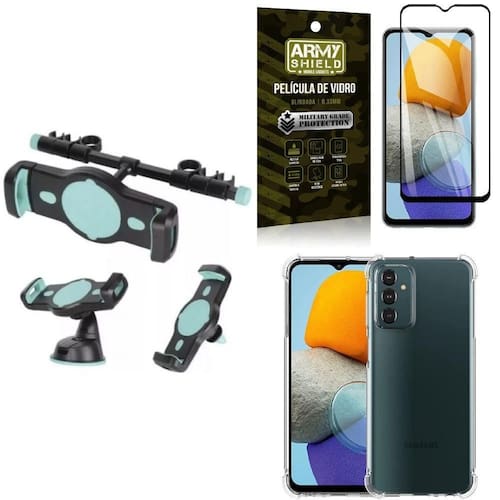 Kit suporte veicular 3 em 1 + capa anti impacto + película de vidro 3d - armyshield