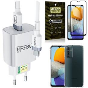Carregador turbo 18w hs183 tipo c + capinha anti impacto + película 3d - armyshield