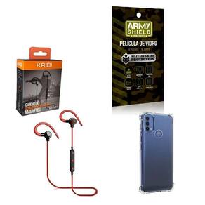 Fone de Ouvido Esportivo sem fio Magnético e com gancho para esportes KD-904Se você procura um fone para as atividades diárias, exercícios e movimento o fone sem fio KD-904 é a escolha idealContém Tons graves , profundos e complexos. Um verdadeiro som de qualidadeControle a reprodução de músicas e vídeos direto do botão de controle.Atenda e desligue chamadas, microfone HD in line embutido com controle de faixas.Com imã embutido que não atrapalha e não fica caindo da orelha, produto de design intra-auricular projetado para ser confortável ao ouvido.Isolamento de ruídos sem vazamento de som. O fone utiliza uma tecnologia aeronáutica de redução de ruído. Isola interferência de ruído externo. Mergulhe no mundo da músicaEspecificaçãoVersão: V5.0Tempo de espera: 200hTempo de conversação: 6hTempo de reprodução de música: 5hTempo de carregamento: 1hFrequências RF: 2,4GHzFaixa de frequência: 2.402G-2.480GTemperatura ambiente: -20/ +60CDistância de transmissão: 10mEspecificação do DriverUnidade do driver: 10mmSensibilidade: 90dB +-3dBImpedância: 32 +- 15%Resposta de frequência: 20-20000HzComprimento do cabo: 600mm-----Película de Vidro 3D Blindada - Armyshield Com Kit de InstalaçãoA película de vidro 3D para celular é um produto de alta qualidade que oferece proteção e estilo para o seu dispositivo móvel. Feita de vidro temperado de alta resistência, a película é projetada para se encaixar perfeitamente na tela do seu celular, proporcionando uma cobertura completa e proteção contra arranhões, rachaduras e outros danos. ------- Capinha Silicone Anti Impacto Anti Shock Transparente - ArmyshieldA capa de celular antishock é um produto de alta qualidade que oferece proteção e estilo para o seu dispositivo móvel. Feita de material de TPU poliuretano termoplástico de alta resistência, a capa é projetada para absorver impactos e proteger o seu celular contra quedas, arranhões e outros danos.Somos especialistas em Acessórios para celular há mais de 7 anos Antes de comprar verifique se o modelo do seu celular é o mesmo do produto comprado. Agradecemos a Preferência