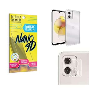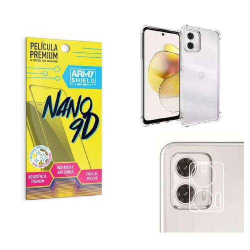 Kit Capinha Moto G73 AntiShock Transparente + Película de Cerâmica 9D Frontal + Película de Lente da Câmera Armyshield