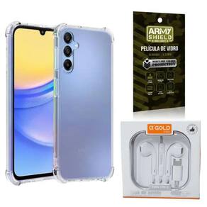 Proteja seu Galaxy A55 com estilo e segurança com este conjunto completo que inclui uma capinha antishock, uma película 3D para proteção da tela e um fone de ouvido Tipo-C para uma experiência de áudio imersiva.