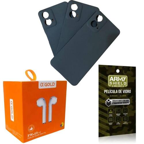 Kit Capinha Preto Para Moto G34 + Fone Bluetooth + Pelicula 3D Proteja seu Moto G34 com estilo e segurança com esta capinha AntiShock Preto combinada com uma película 3D De Vidro para uma proteção completa.