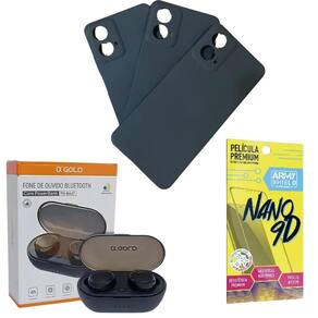 Kit Capinha Preto Para Moto G34 + Fone Bluetooth + Pelicula 9D Proteja seu Moto G34 com estilo e segurança com esta capinha AntiShock Preto combinada com uma película 9D Nano Flexível para uma proteção completa.